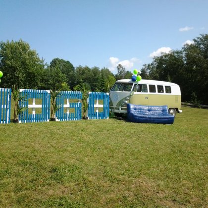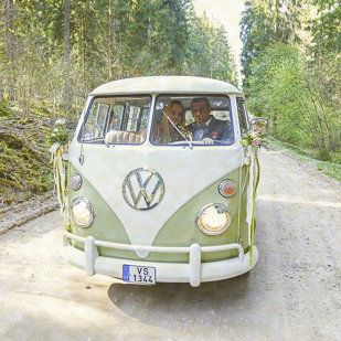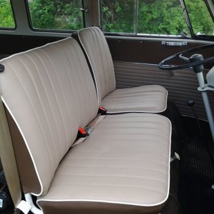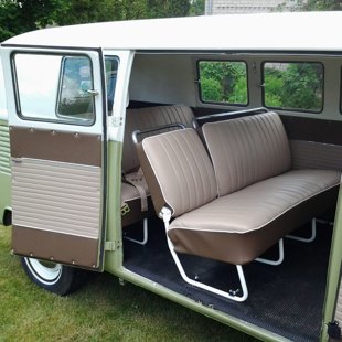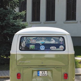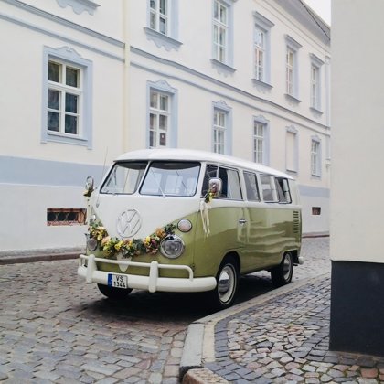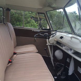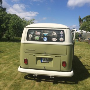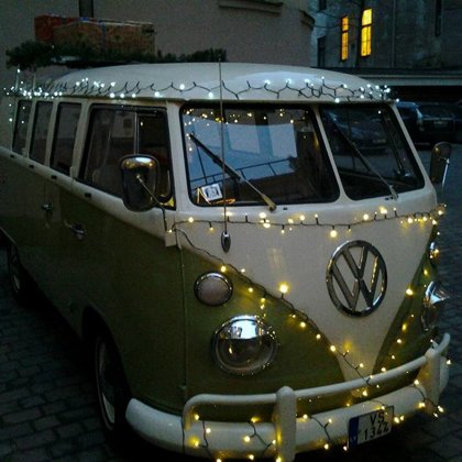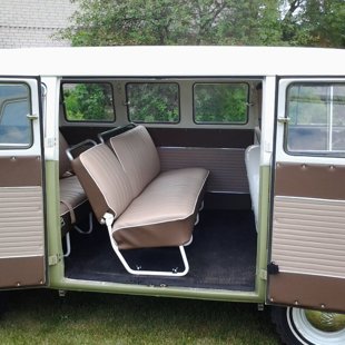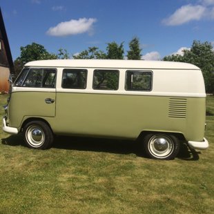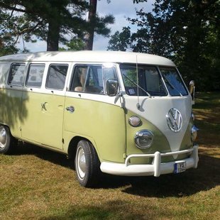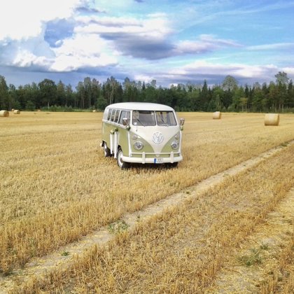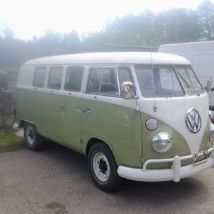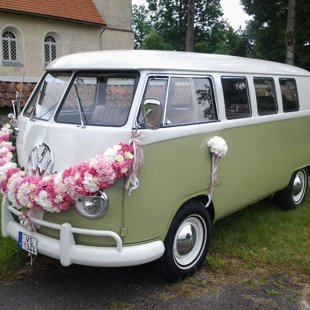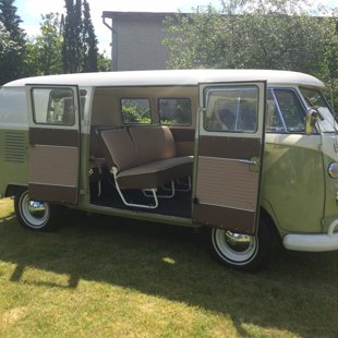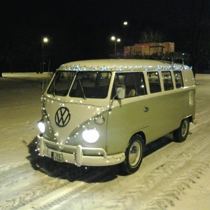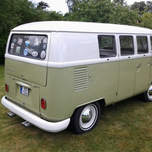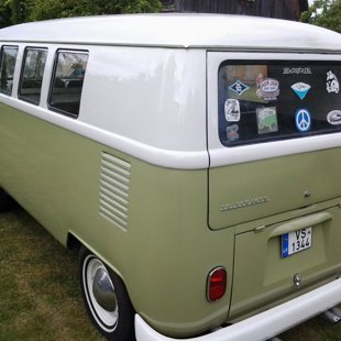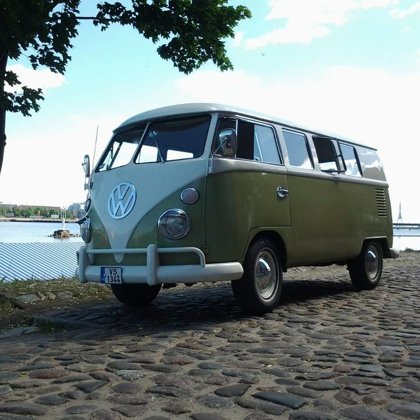 1966. gada T1 busiņu Latvijā ievedām no Kalifornijas 2013. gada novembrī. Tur tas baudījis īstu hipiju dzīvi Santa Barbaras pludmalē, kur to fotogrāfējuši tūristi un gleznojis mākslinieks Roberts Bruggers. Šis busiņš orgināli bijis pērļu baltā krāsā (VW color L87 Pearl White skat.: Bilde), taču pēdējais īpašnieks ASV to nokrāsoja zilā tonī. Mēs veicām pilnīgu busiņa restaurācija un ar Facebook balsojuma palīdzību pieņēmām lēmumu, ka jaunais tonis būs mango zaļš (L 346 mango green), bet, lai jumts vairāk kontrastētu, izvēlējāmies siltu balto toni (L 87 pearl white toni). Visas krāsas ir no orģinālās VW type 2 bus krāsu paletes un atbilst toņiem, kas izmantoti attiecīgajā izlaides gadā. Salons ir bēša un brūnā krāsā, lai saglabātu silto toņu gammu. Šis busiņš 2015.gadā bija viens no vecākajiem Latvijā reģistrētajiem automobīļiem. Busiņā ir 8 pasažieru vietas + 1 vieta šoferim. Galerijā apskatāmas bildes pirms, procesā un pēc restaurācijas.